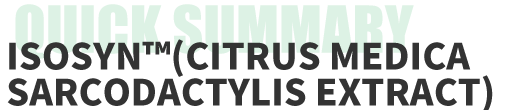You will feel the effects of IsoSYN™(Citrus medica sarcodactylis extract) from the first dose. Improvements in energy, mood and focus will noticed within the first 30 minutes of consuming the ingredient. Increased energy, improved physical performance and improved mental alertness & cognition have all been noted as initial effects of taking IsoSYN™(Citrus medica sarcodactylis extract).